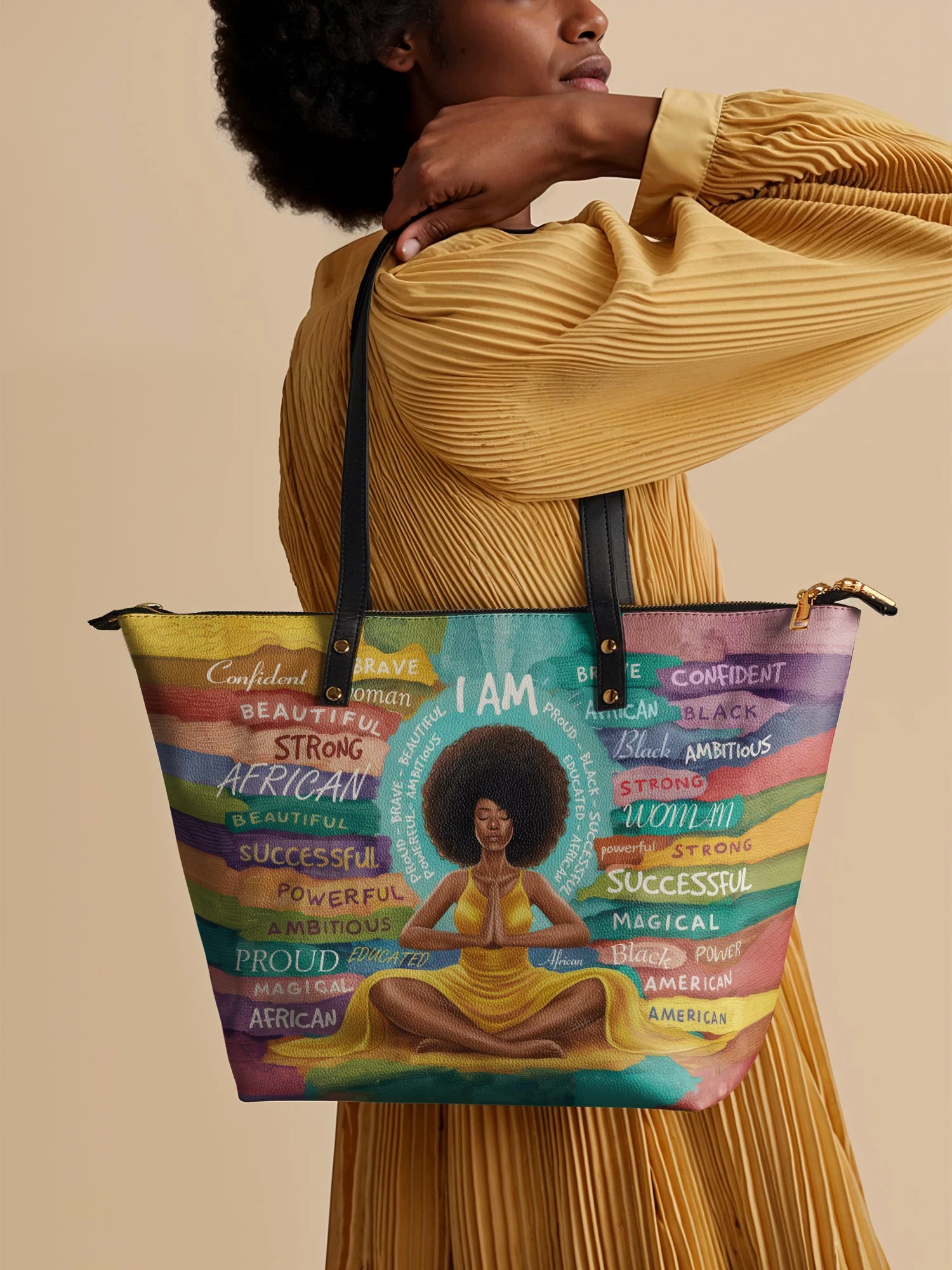 The AfroEssence Tote Bag is a bold celebration of Black beauty, strength, and resilience. Designed to empower and inspire, this tote showcases a stunning Black woman surrounded by powerful affirmations that highlight the essence of who she is—strong, beautiful, ambitious, magical, and successful.
