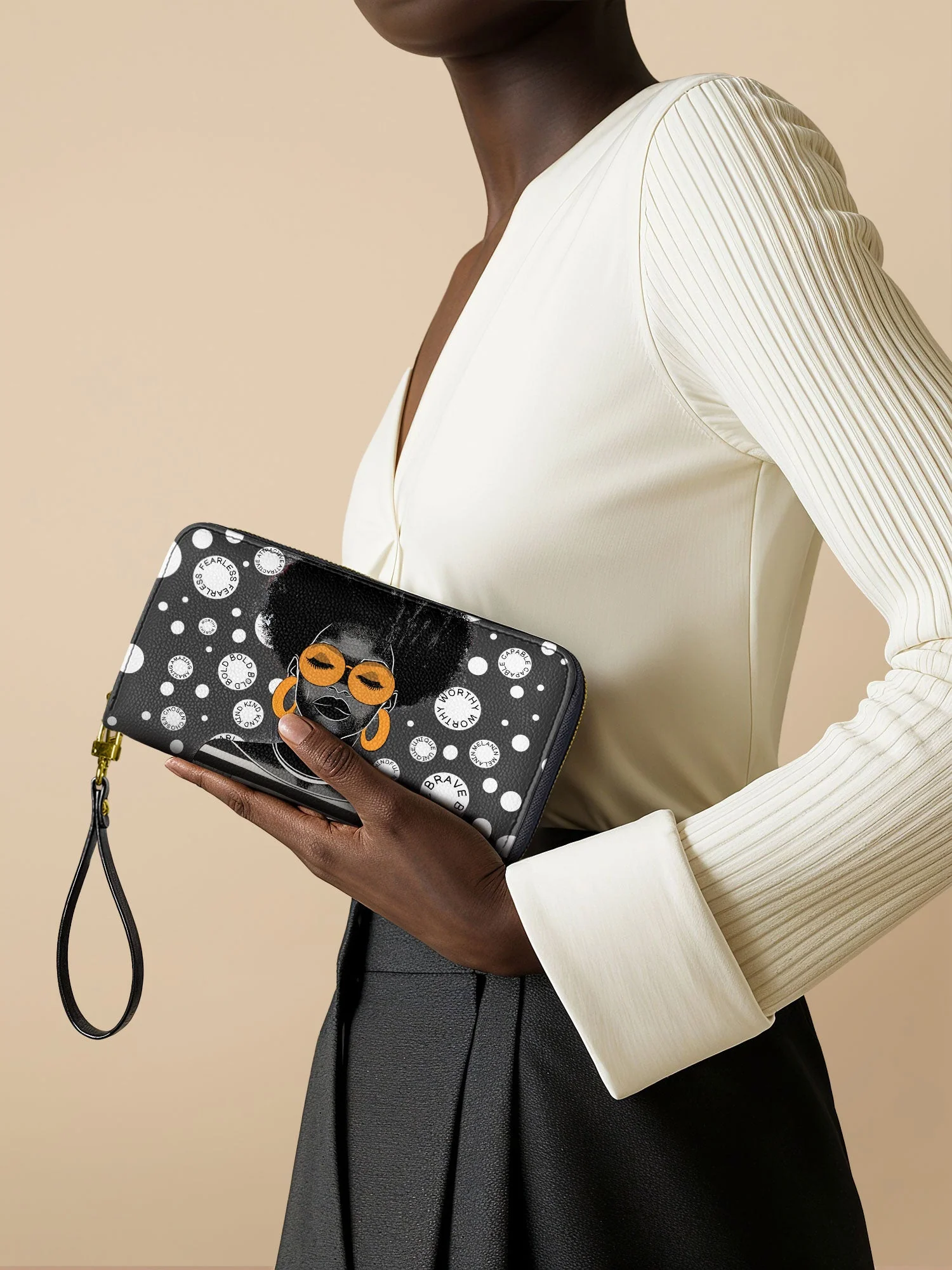 The Fahari Leather Wallet is a fierce little manifesto. Wrapped in bold dots and powerful affirmations like ‘Worthy,’ ‘Brave,’ and ‘Fearless,’ it’s for the woman who walks in truth—even when she’s just running errands. Carry your cards, your coins, and your confidence—all zipped into one unapologetic statement.